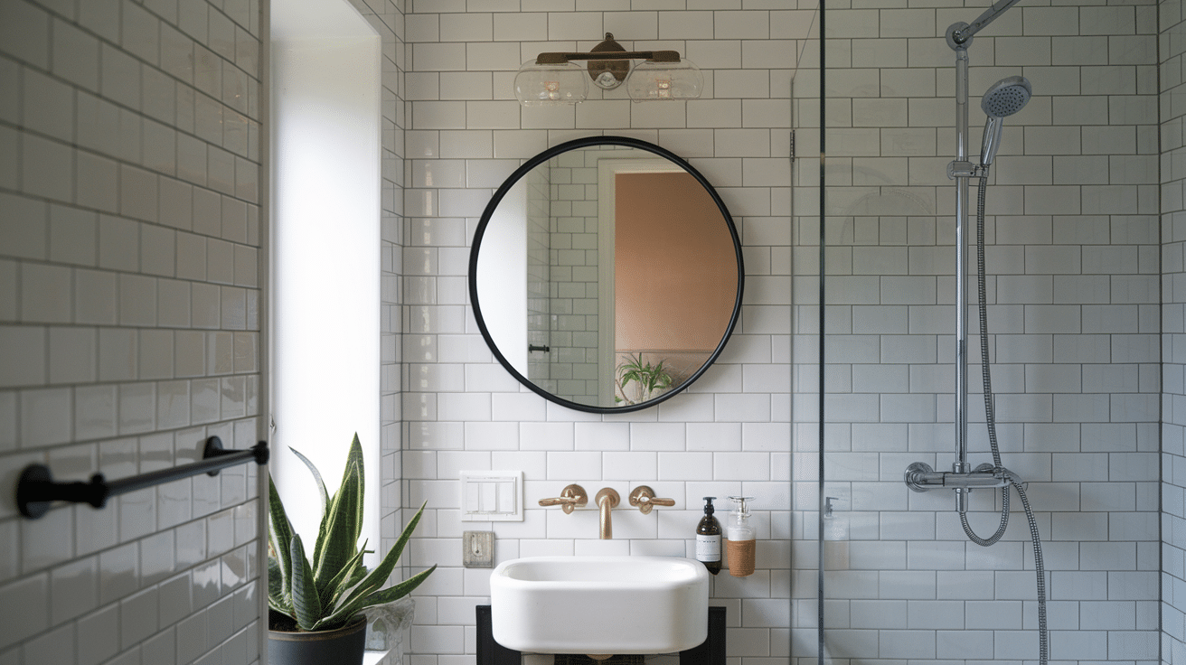 - Cabinet Hardware & Mirror Frames: Here, you introduce your accent metal. If fixtures are cool-toned, pick a warm accent metal in handles or mirror frames. It defines focal points and adds contrast where the eye naturally lands.